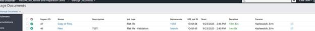 With the test being run first the job should finish with a checkmark. Simply select the document count hyperlink to be taken to the document set.